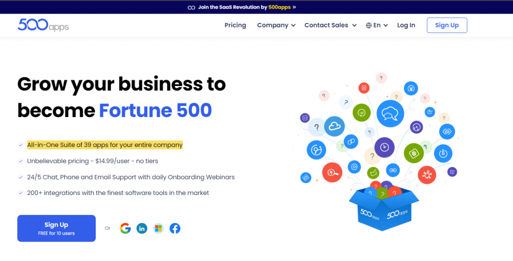 500 Apps – All-in-One Suite of 39 apps for your entire company, all apps free for 10 users.