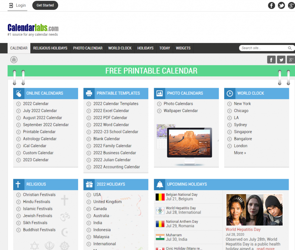 Calendar Labs – Free Calendar templates