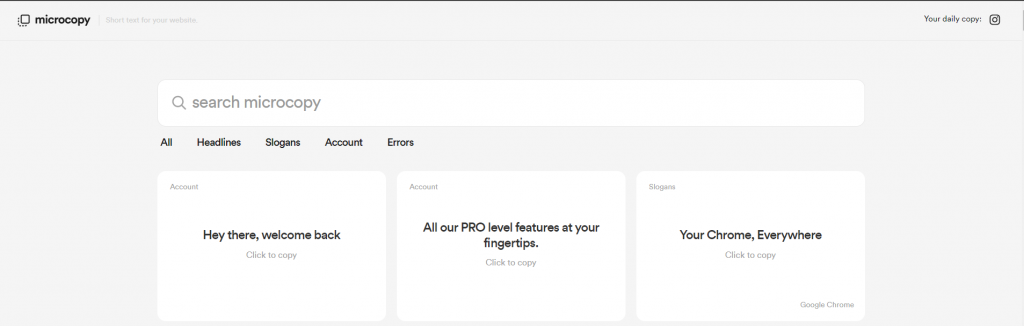 Microcopy – Find headlines and slogans for your emails, websites, and much more.
