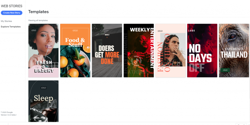 You can create a new story or view some of the templates that Google have made available.