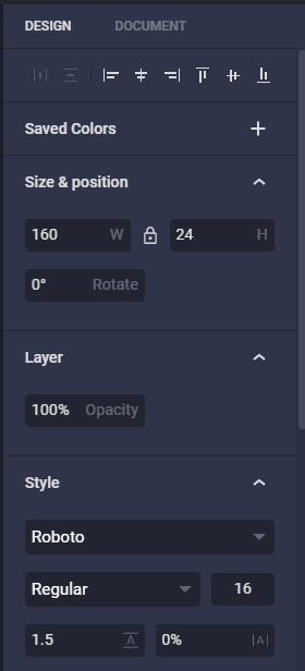 Every element you add is placed in the layers bar, anyone who has worked on Photoshop or any Adobe product would have a pretty good understanding of how this works. Once you have dragged and dropped the elements you want the design bar will bring up different options based on the type of element you are currently editing. To edit any of the previous elements you have added, you can select them in the layers panel and changes the options in the design panel as needed.