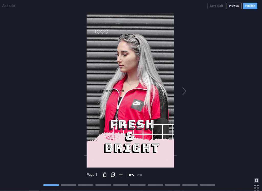 The middle screen gives you the option to delete, duplicate or add a new page/screen to your story. To move between screens/pages of your web story you can use the next and previous arrows.
